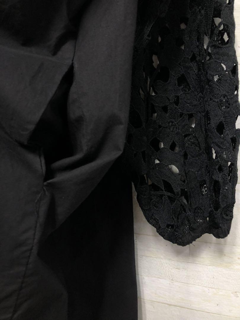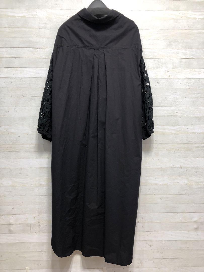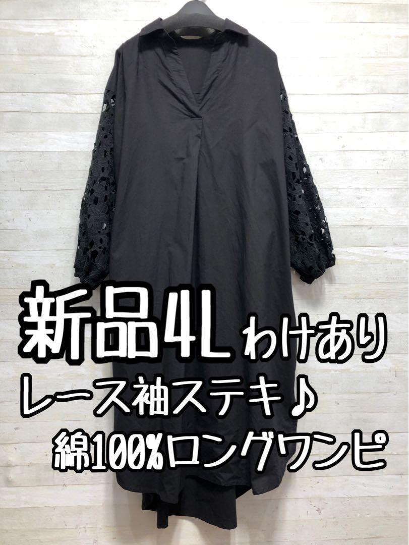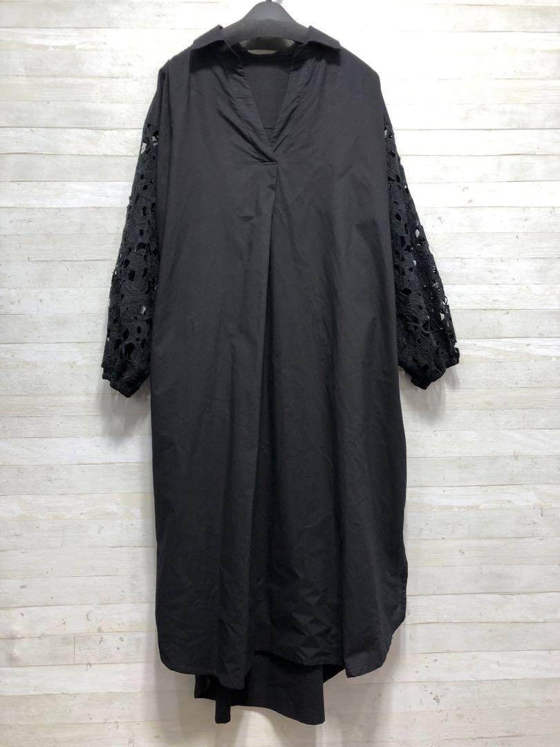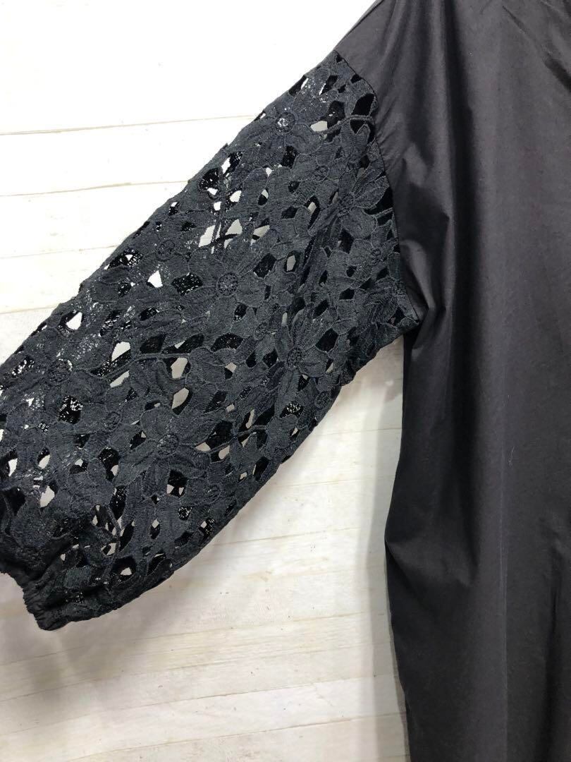 新品☆4L♪黒系♪お花モチーフレース袖のスキッパーシャツワンピース〇D666