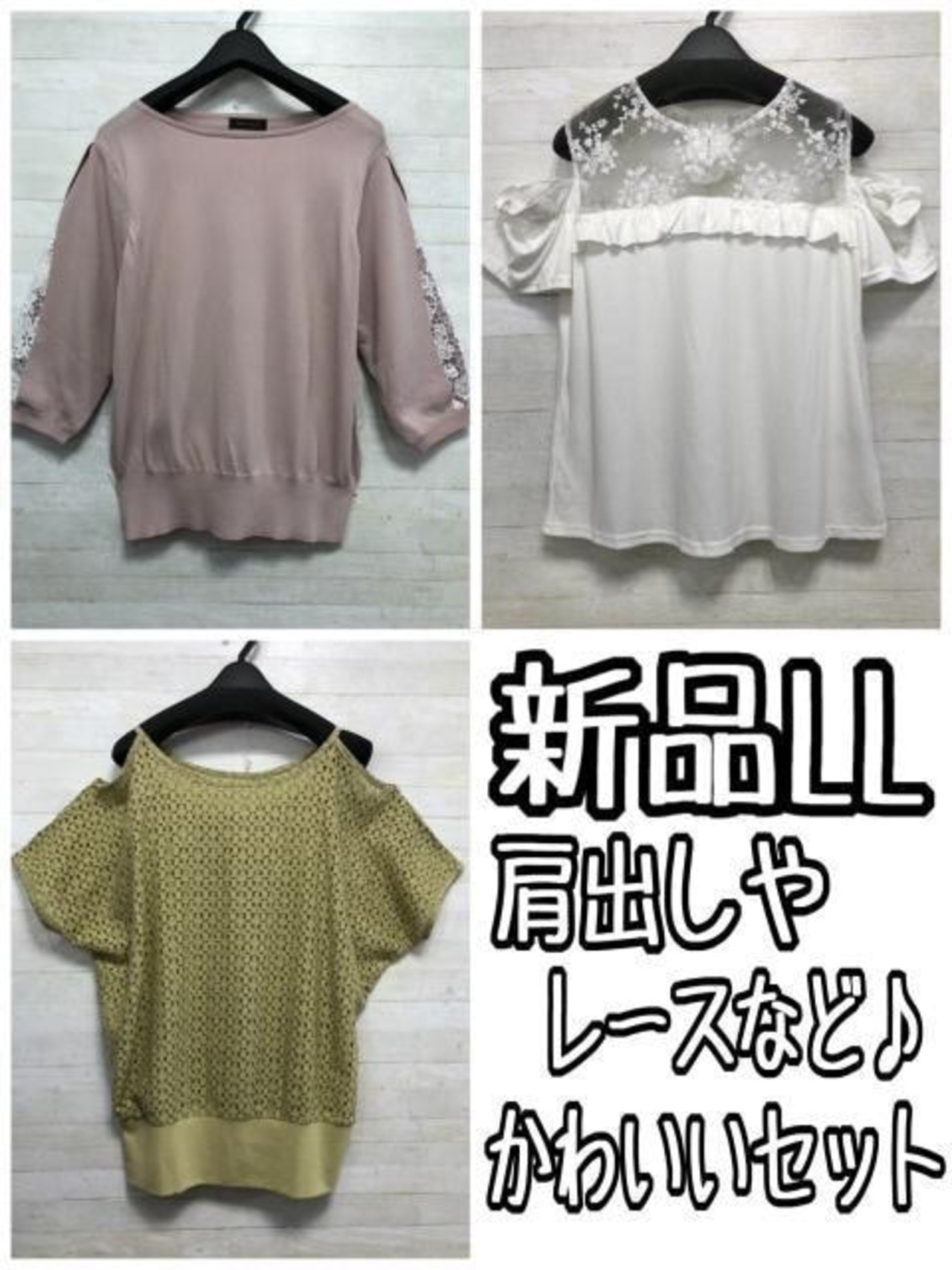新品☆LLレース&肩出し♪フェミニントップス3枚セット〇D660