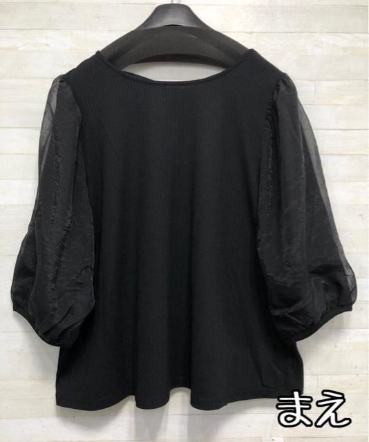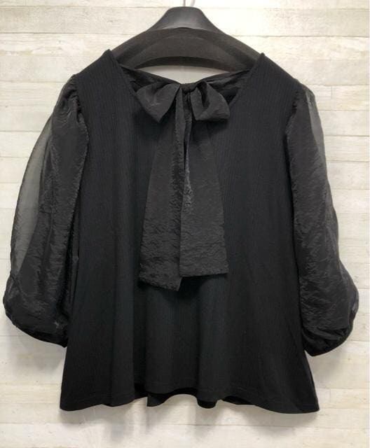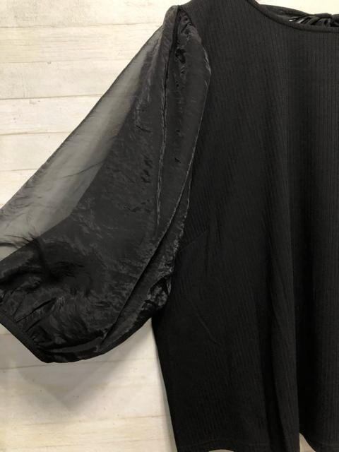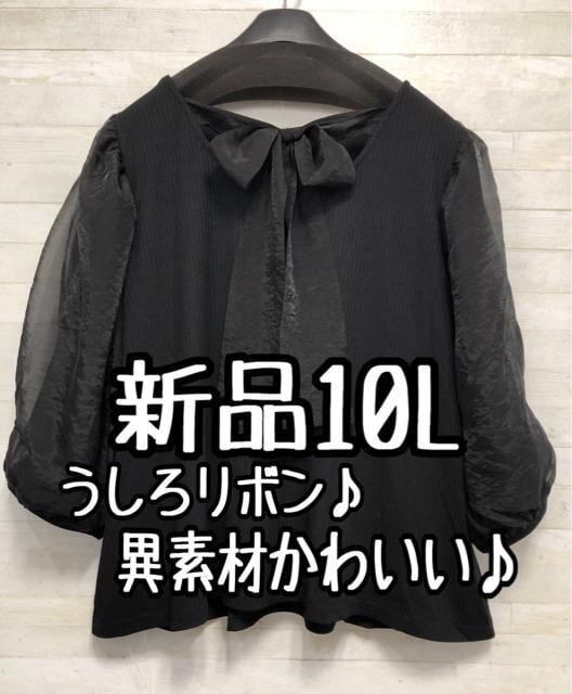 新品☆10L黒系フェミニン♪異素材カットソートップス〇D663