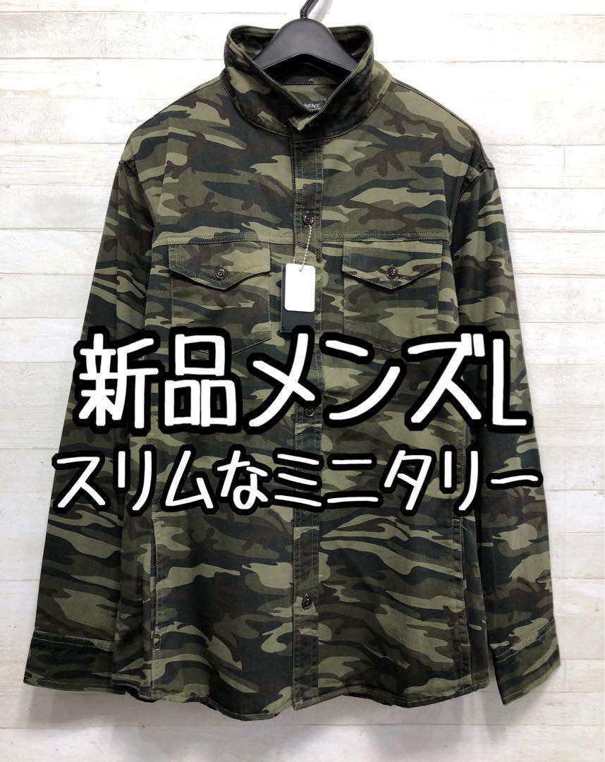 新品☆メンズL♪カーキ系♪スリムなミリタリージャケット〇D664