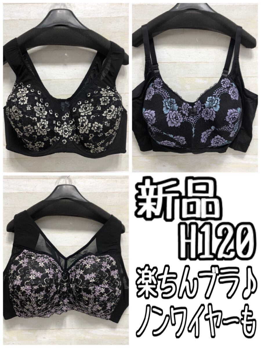 新品☆H120黒系♪楽ちんブラ3枚セット♪ノンワイヤーも〇G525