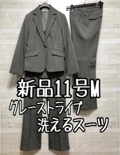 新品☆11号Mグレー系ストライプ♪脚長見え♪2パンツスーツ♪お仕事・通勤〇〇D670