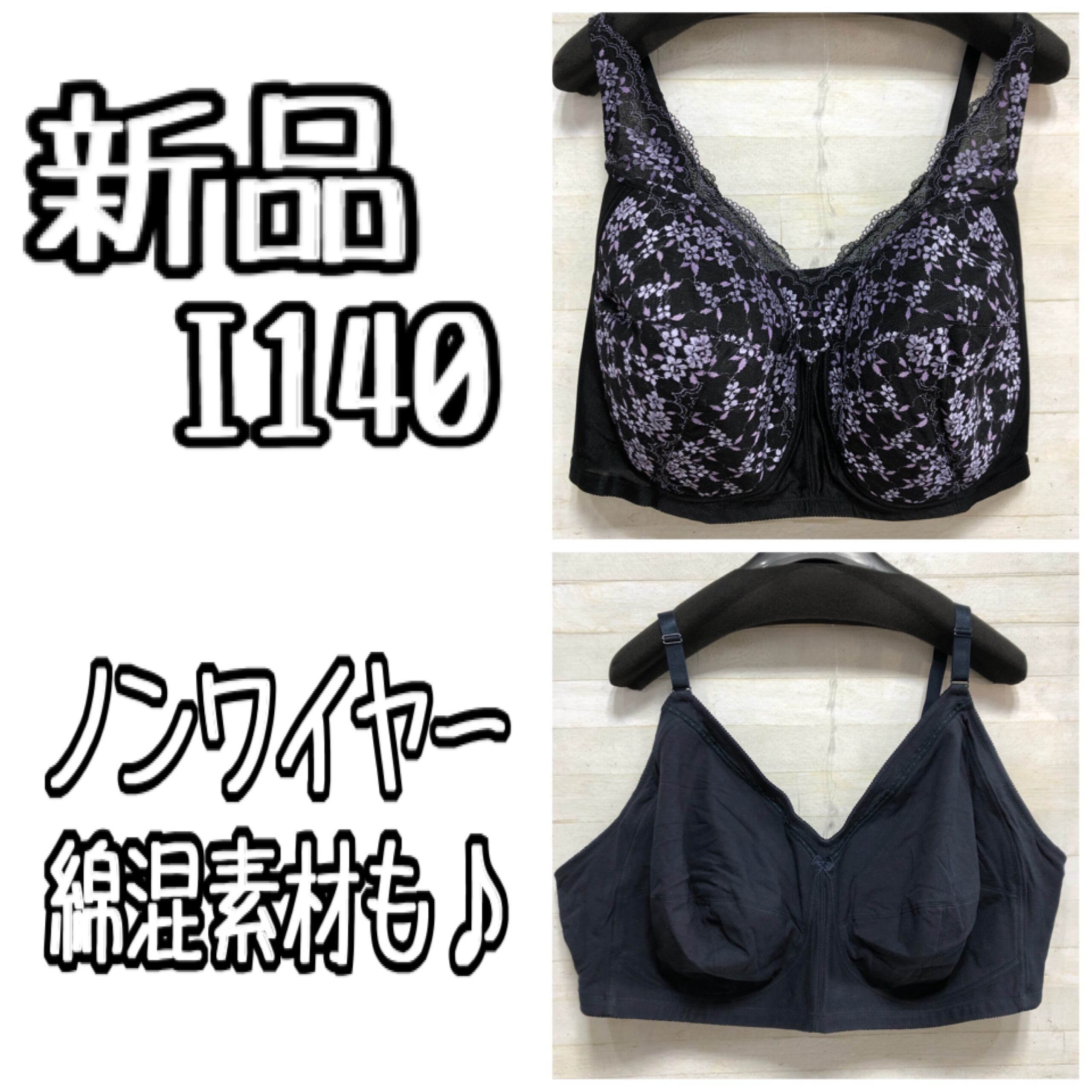 新品☆I140♪ノンワイヤー楽ちん♪フルカップブラ2枚♪綿混も〇G534