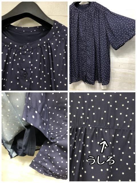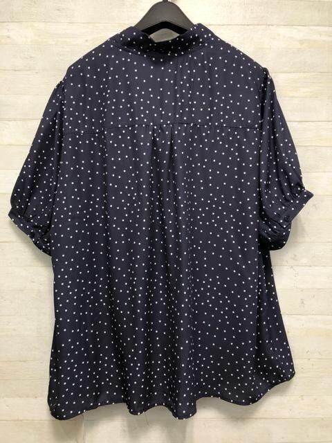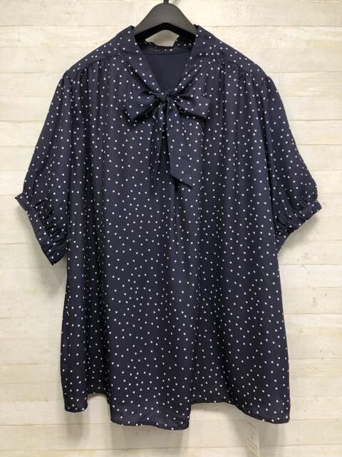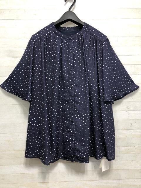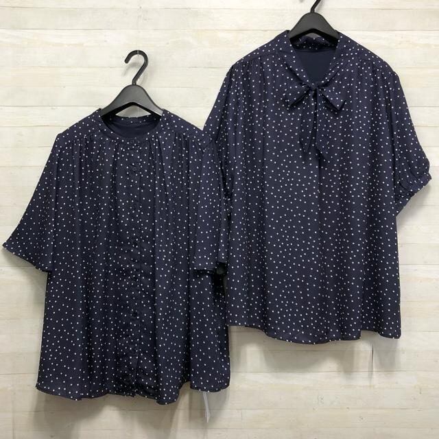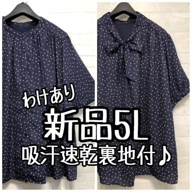 新品☆5L紺系ドット柄♪半袖きれいめブラウス2枚セット♪わけあり〇D678