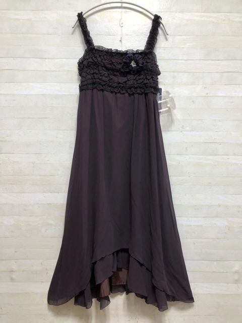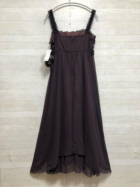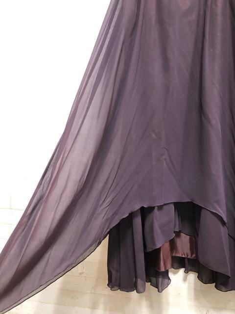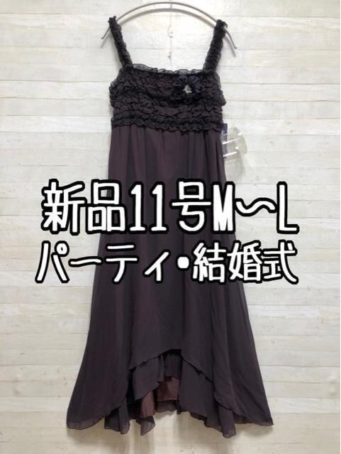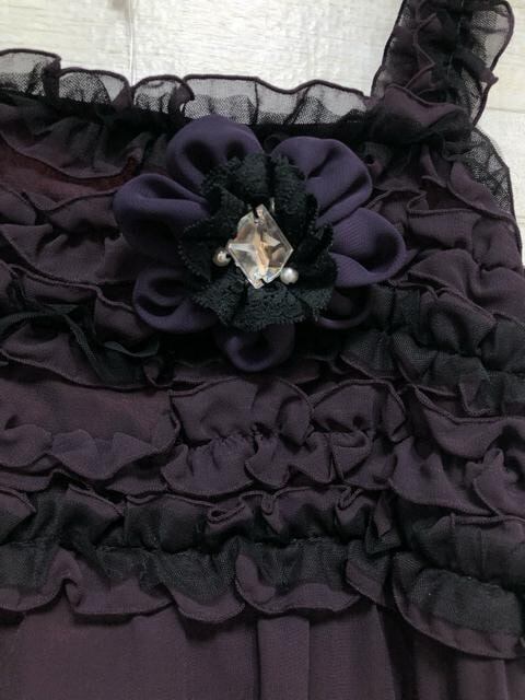新品☆11号M~Lパープル系♪コサージュ付パーティワンピース〇G543