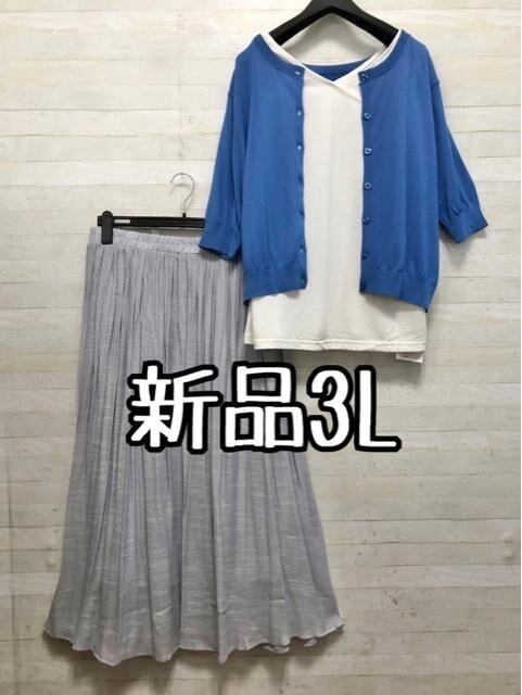 新品☆3L♪ショート丈カーデ&タンクトップ&ふんわりスカート〇G550