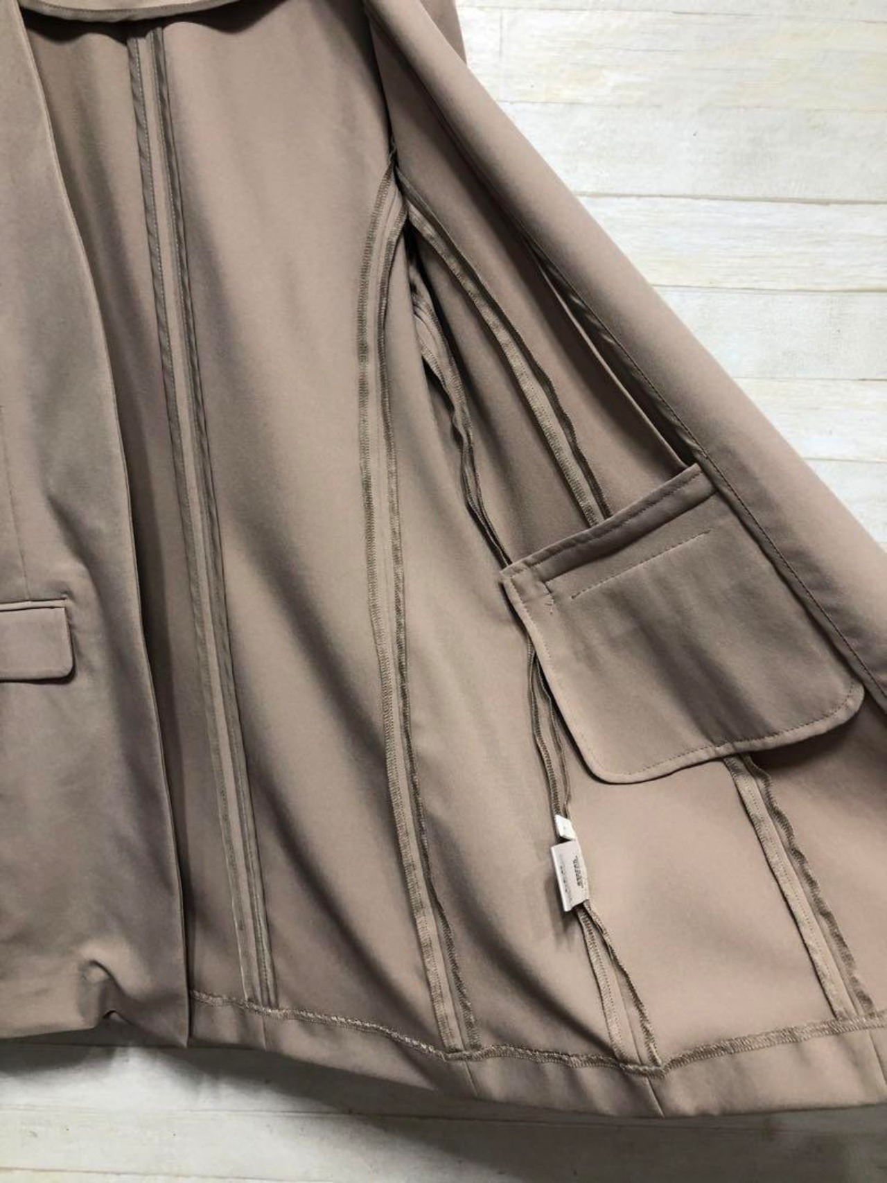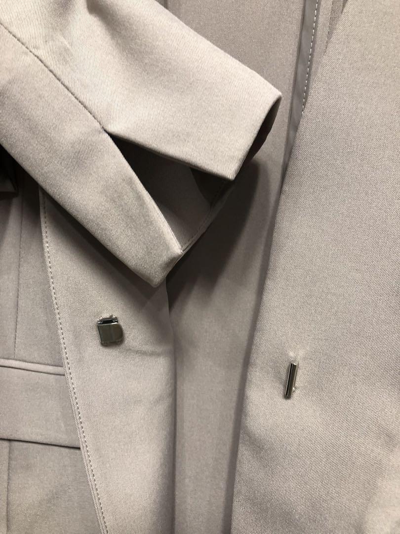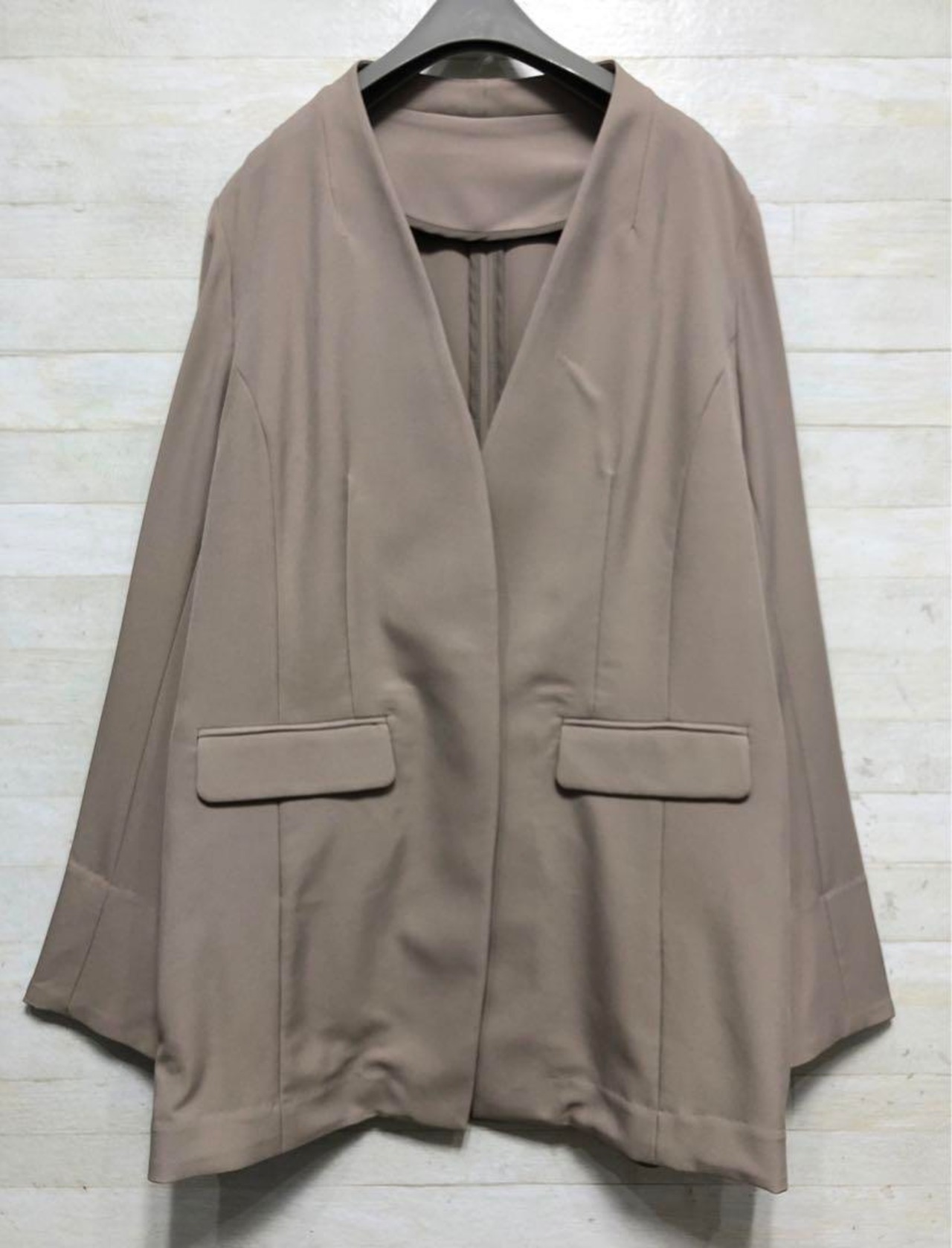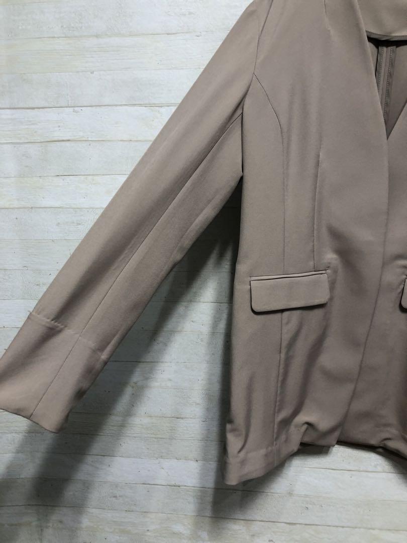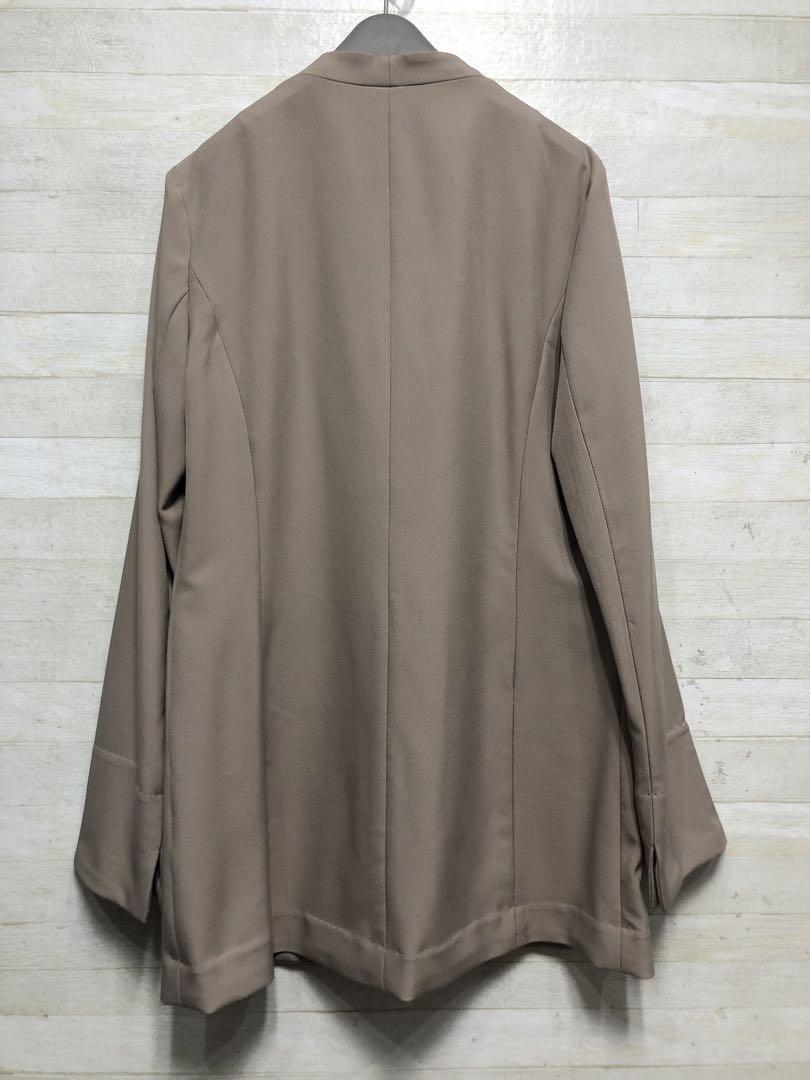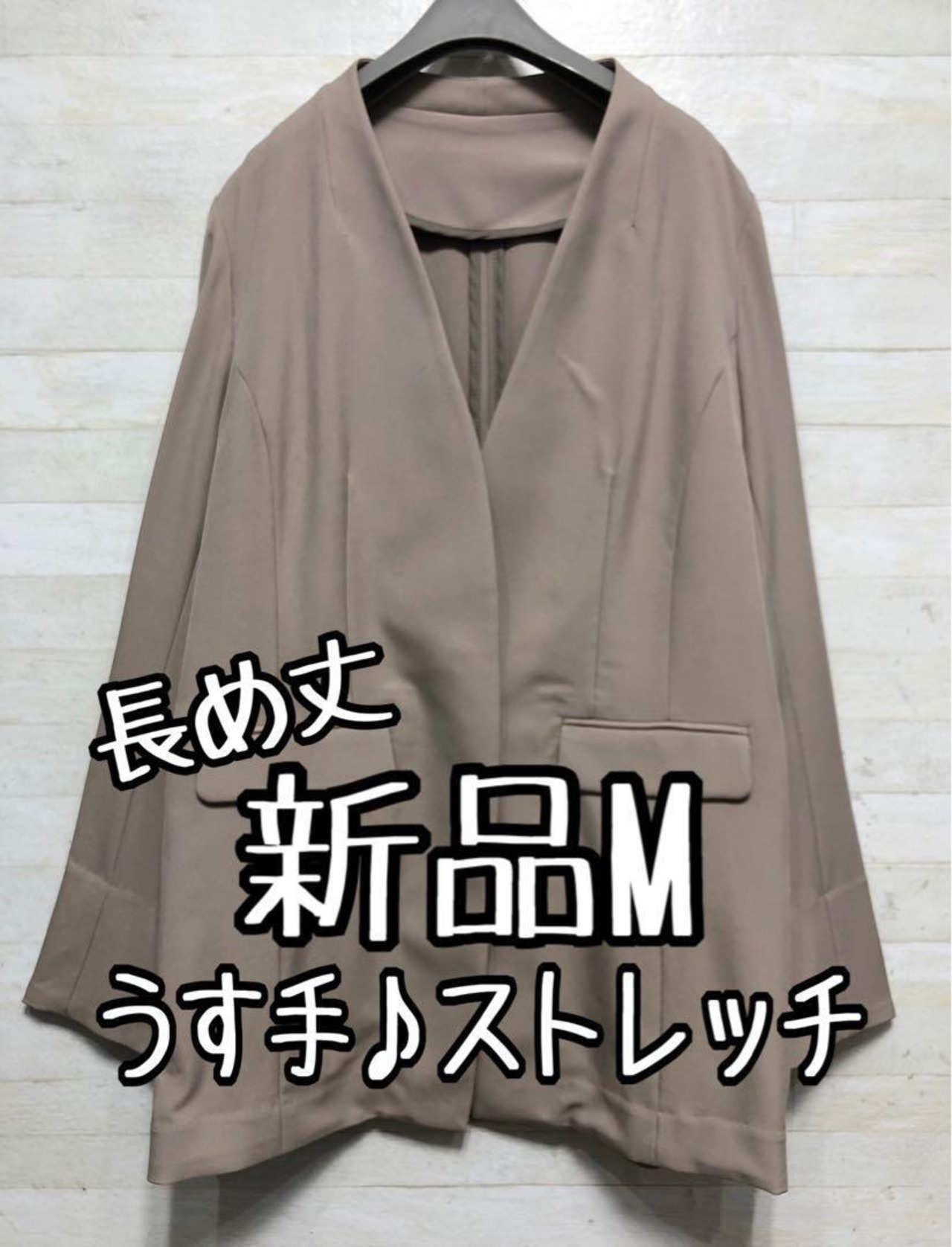 新品☆M♪グレージュ系♪うす手♪長め丈ノーカラージャケット〇G554