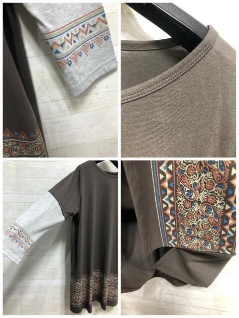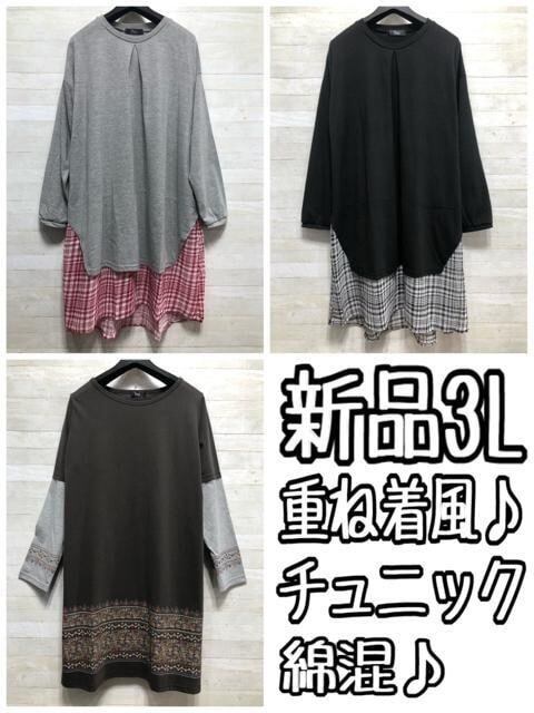 新品☆3L重ね着風おしゃれチュニック3枚セット♪綿混〇G555