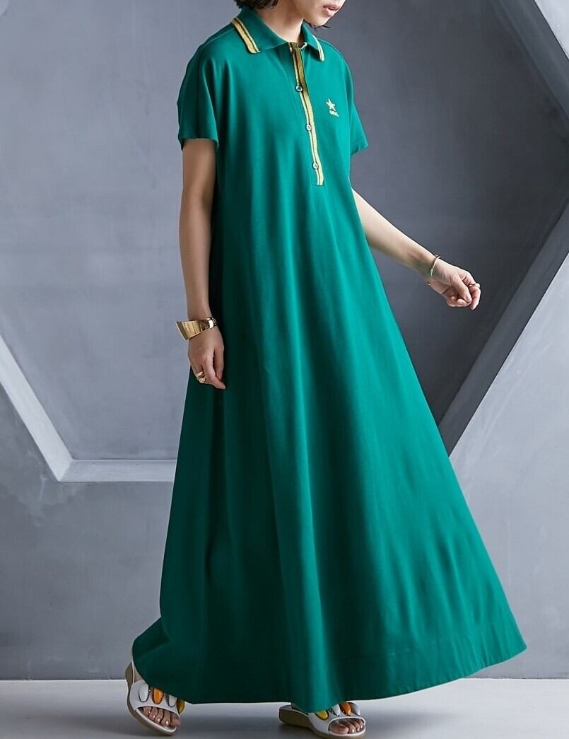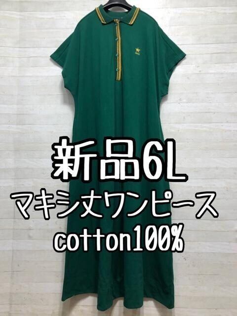 新品☆6L♪グリーン系♪綿100%♪マキシ丈♪ポロシャツワンピース〇G579
