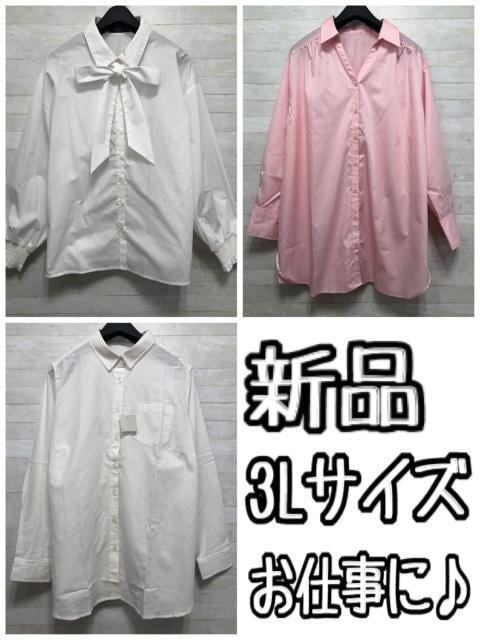 新品☆3L♪お仕事に♪長袖シャツ&ブラウス3枚セット〇L101