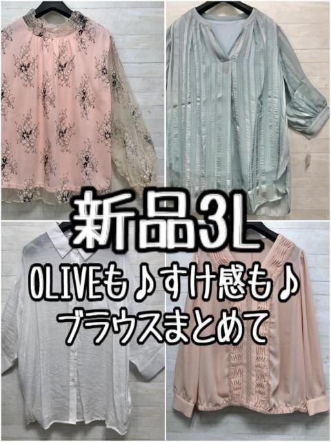 新品☆3L♪すけ感シアーやOLIVEなど♪フェミニンブラウスまとめて〇L102