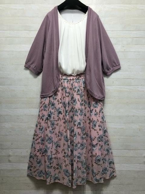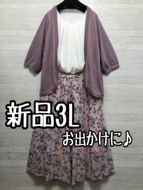 新品☆3L♪ESTACOTカーデ&あたかもブラウス&プリーツスカート♪お出かけ〇L103