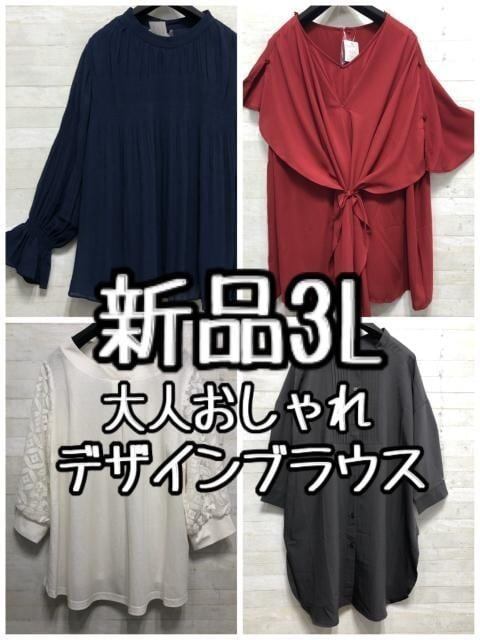 新品☆3L♪大人おしゃれ♪デザイントップス4枚セット♪すけ感も♪〇L108