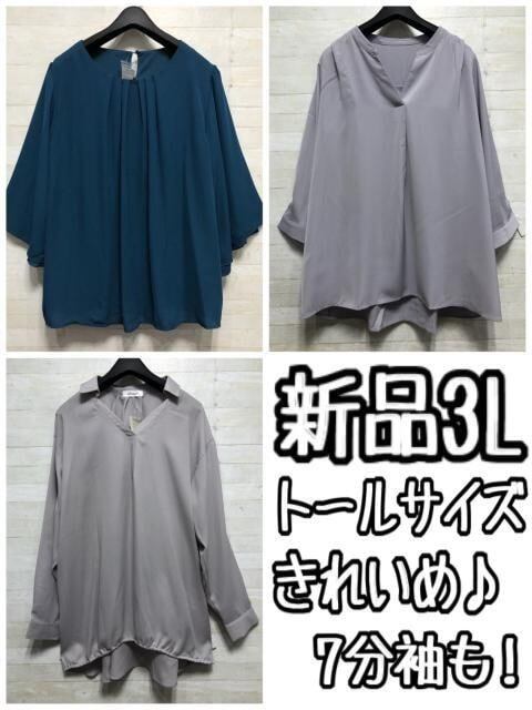 新品☆3Lトールサイズ♪きれいめブラウス3枚セット♪7分袖も〇L113