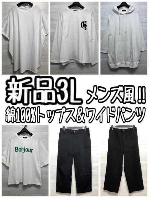 新品☆3L♪メンズ風おしゃれ♪綿100%トップス4枚&綿混パンツ2本〇L118