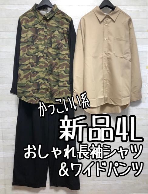 新品☆4L♪かっこいい系♪おしゃれ長袖シャツ2枚&ワイドパンツ〇L125