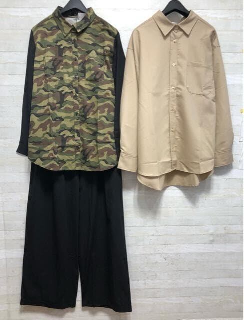 異素材切替♪迷彩柄シャツ