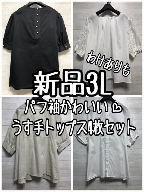 新品☆3L♪パフ袖キュートなうす手トップスまとめて♪お出掛けにも〇L133