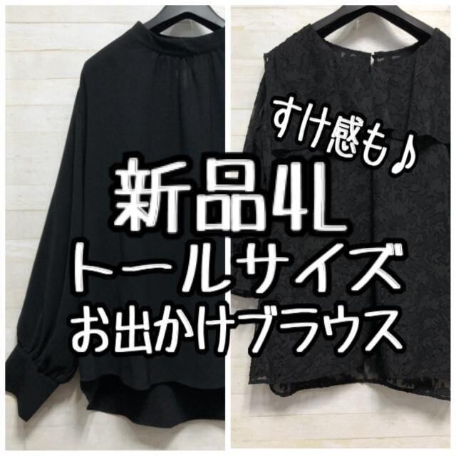 新品☆4Lトール黒系♪お出掛けにも使えるブラウス2枚セット〇L151