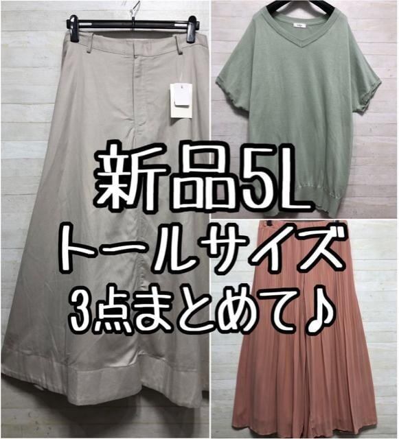 新品☆5Lトールサイズ♪麻混ロングフレアスカート、ワイドパンツ等〇L166