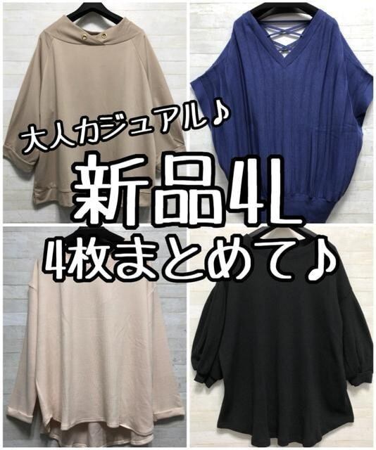 新品☆4L♪トップス4枚まとめて♪春秋ドルマン5分袖7分袖も♪〇L181