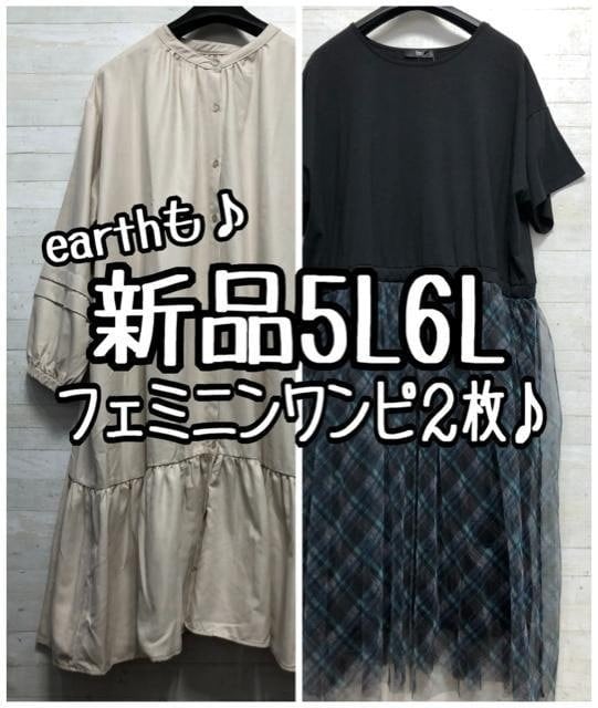 新品☆5L6L♪フェミニンかわいいワンピース2枚セット♪earthも♪〇L201