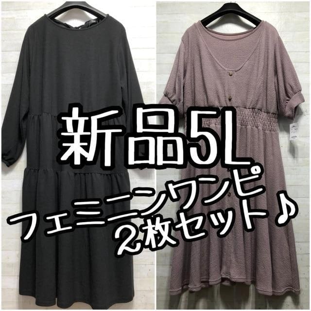 新品☆5L♪フェミニンワンピース2枚セット♪可愛い♪わけありも〇L204
