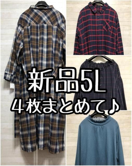 新品☆5L♪チェックのロングシャツ・ブラウスなど4枚まとめて♪〇L216