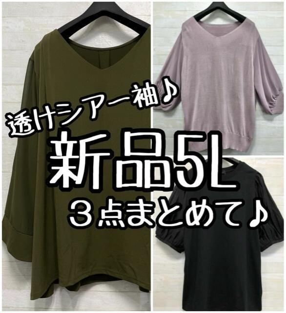 新品☆5L♪シアー袖がきれいなトップス3点まとめて♪すけ感♪〇L226