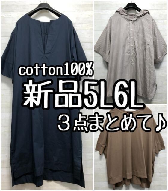 新品☆5L6L♪コットン半袖3点まとめて♪ワンピース・トップス♪〇L231