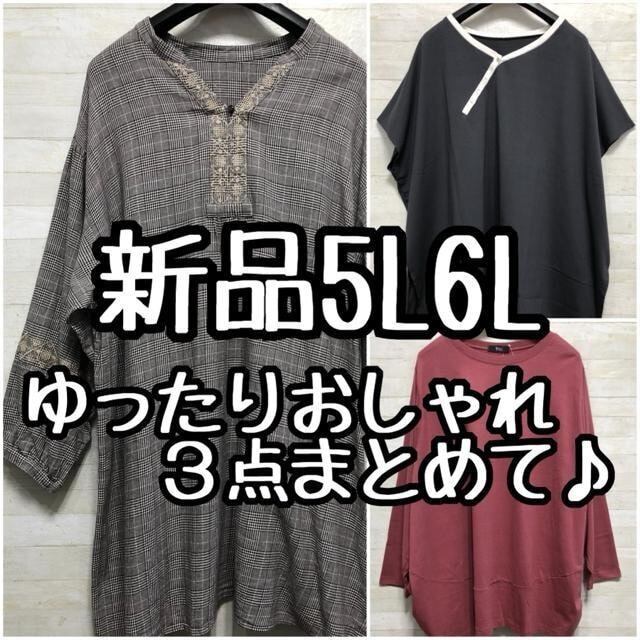 新品☆5L6L♪チュニック等カジュアルトップス3点まとめて♪おしゃれ〇L249