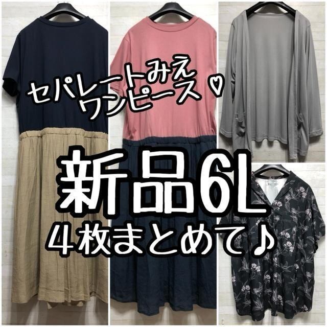 新品☆6L♪セパレート風ロングワンピースなど4枚まとめて♪〇L255