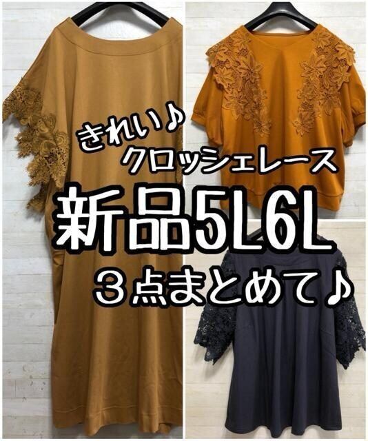 新品☆5L6L♪モチーフレースがきれいな3枚セット♪鍵編みレース♪〇L261