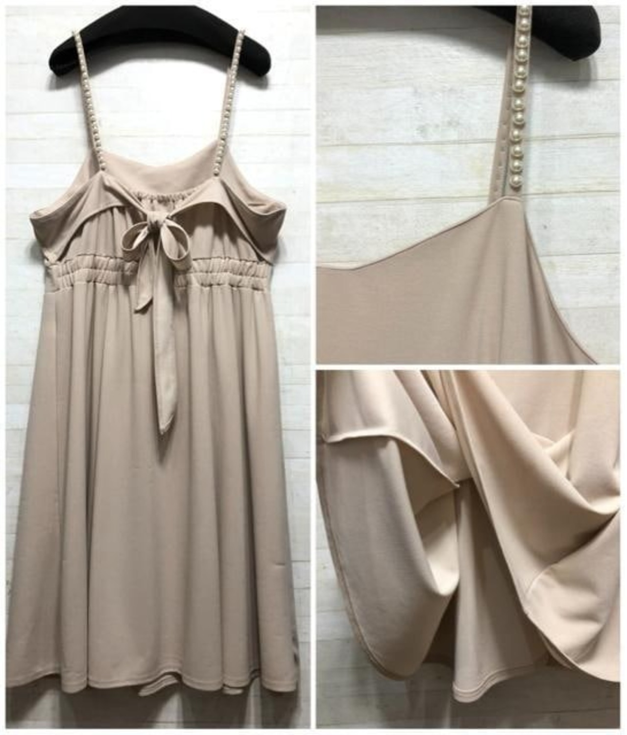 パール調ストラップがきれいなキャミワンピースです♪