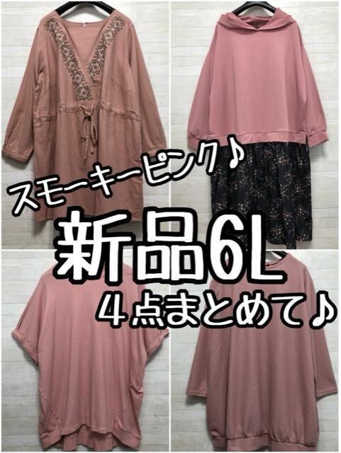 新品☆6L♪スモーキーピンク4点まとめて♪ワンピース・チュニック等♪〇L280