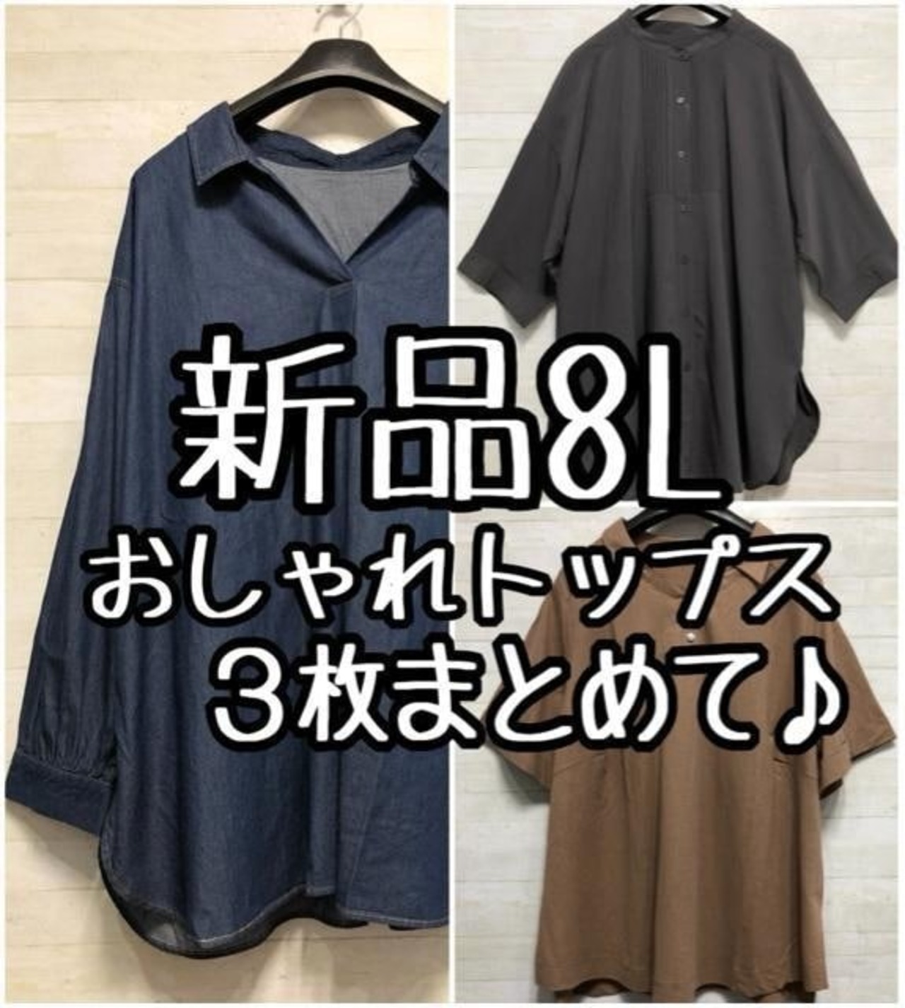新品☆8L♪ブラウス色々3枚まとめて♪半袖・長袖♪スキッパーシャツ〇L299