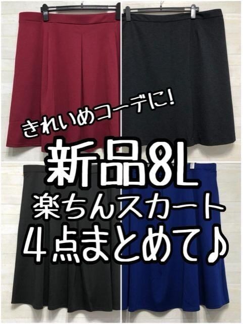 新品☆8L♪きれいめ楽ちんスカート4枚まとめて♪ひざ下ミディアム〇L304