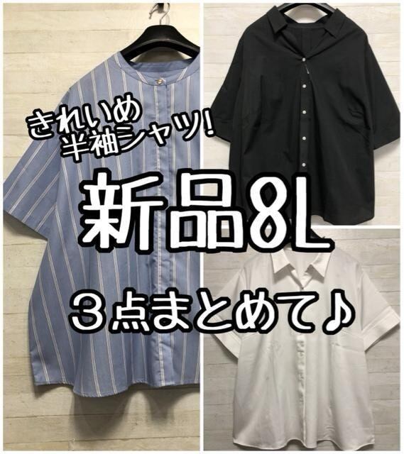 新品☆8L♪きれいめ半袖シャツ3枚まとめて♪おでかけお仕事にも♪〇L308