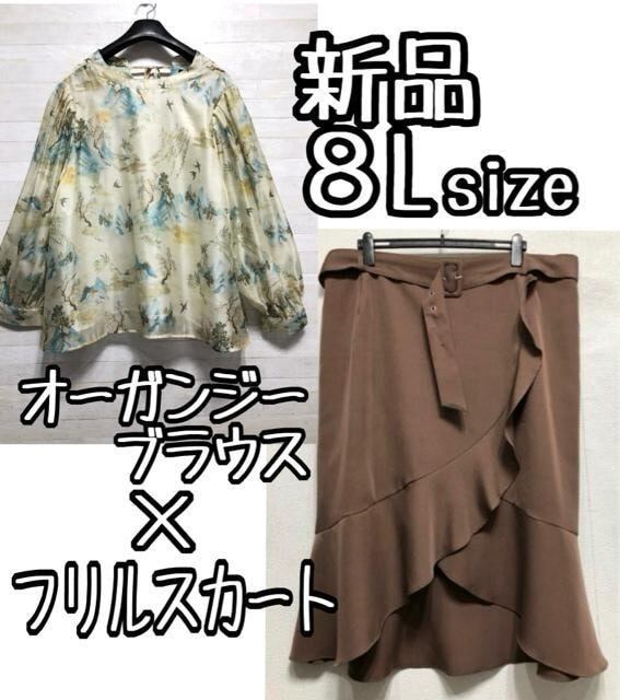 新品☆8L♪オーガンジーブラウス&マーメイドスカート♪きれい〇L315