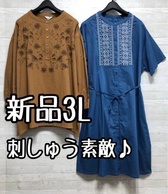 新品☆3L♪刺しゅう素敵♪ブラウス&チュニックワンピース〇D689