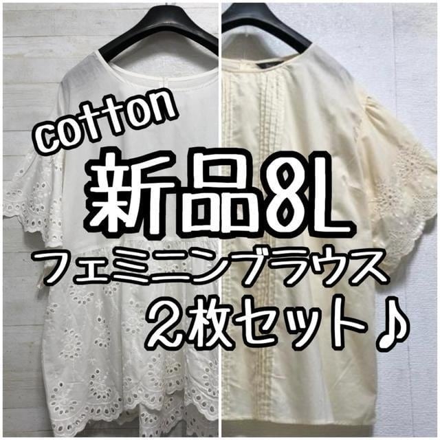 新品☆8L♪カットワーク刺しゅうブラウス2枚セット♪フェミニン可愛い〇L324