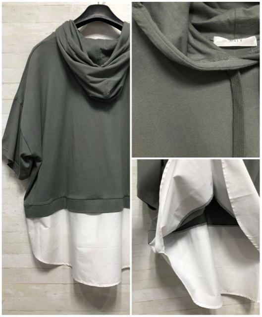 半袖フード付きTシャツ×シャツ素材