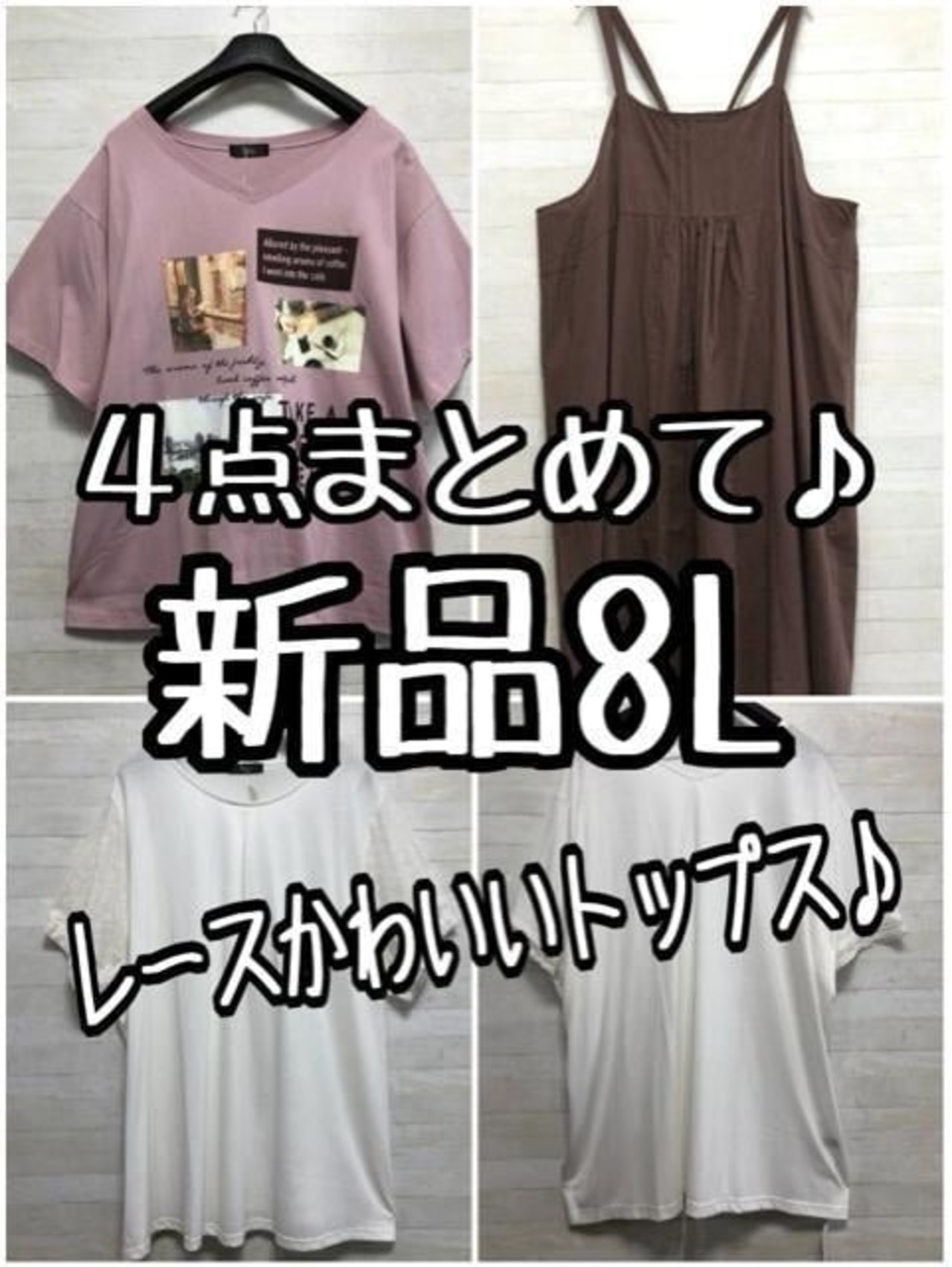 新品☆8L♪かわいい半袖トップス・綿ジャンスカまとめて4枚♪〇L336