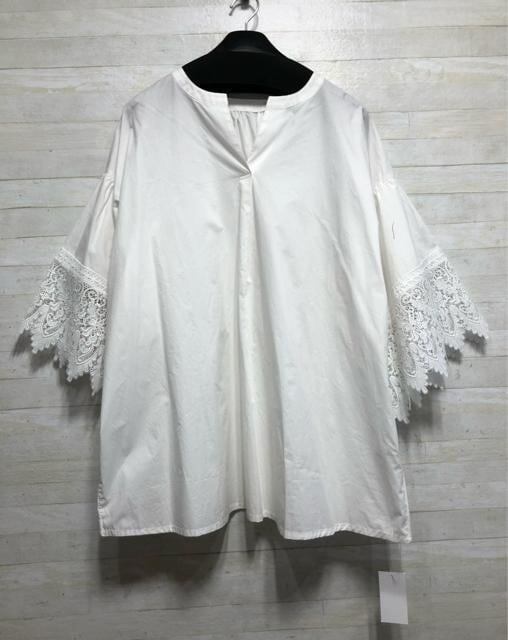 ・袖口レースきれいなスキッパーブラウス