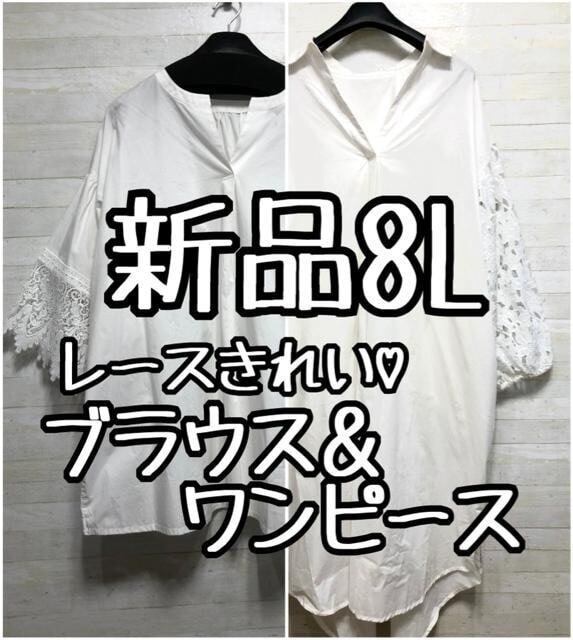 新品☆8L♪白系♪レースきれいなブラウス&シャツワンピをセットで♪L329