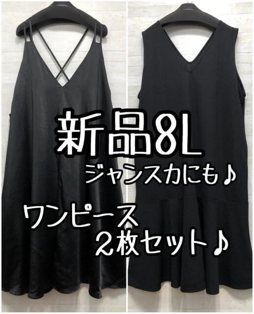 新品☆8L♪黒系♪ジャンスカにも♪ロングワンピース2枚セット♪〇L339
