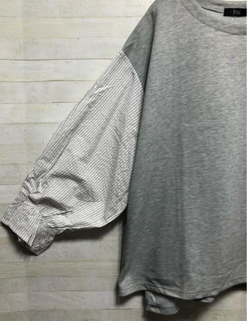 シャツ素材の異素材ドッキングトップス♪