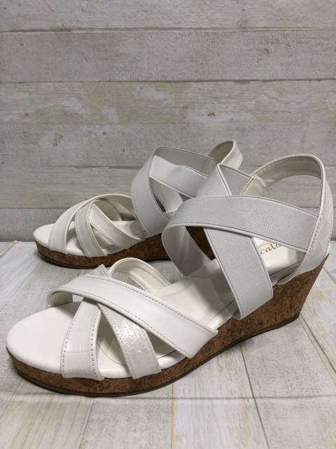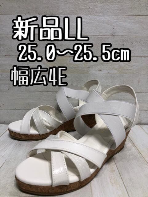 新品☆LL25.0~25.5cm幅広4E♪白系♪ウェッジソールサンダル♪☆D702