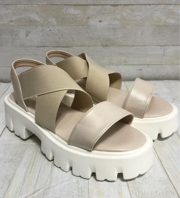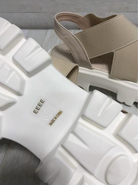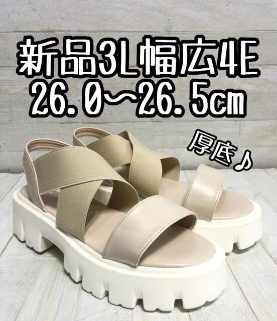 新品☆3L26.0~26.5cm幅広4Eベージュ系♪厚底サンダル♪白ソール☆D704