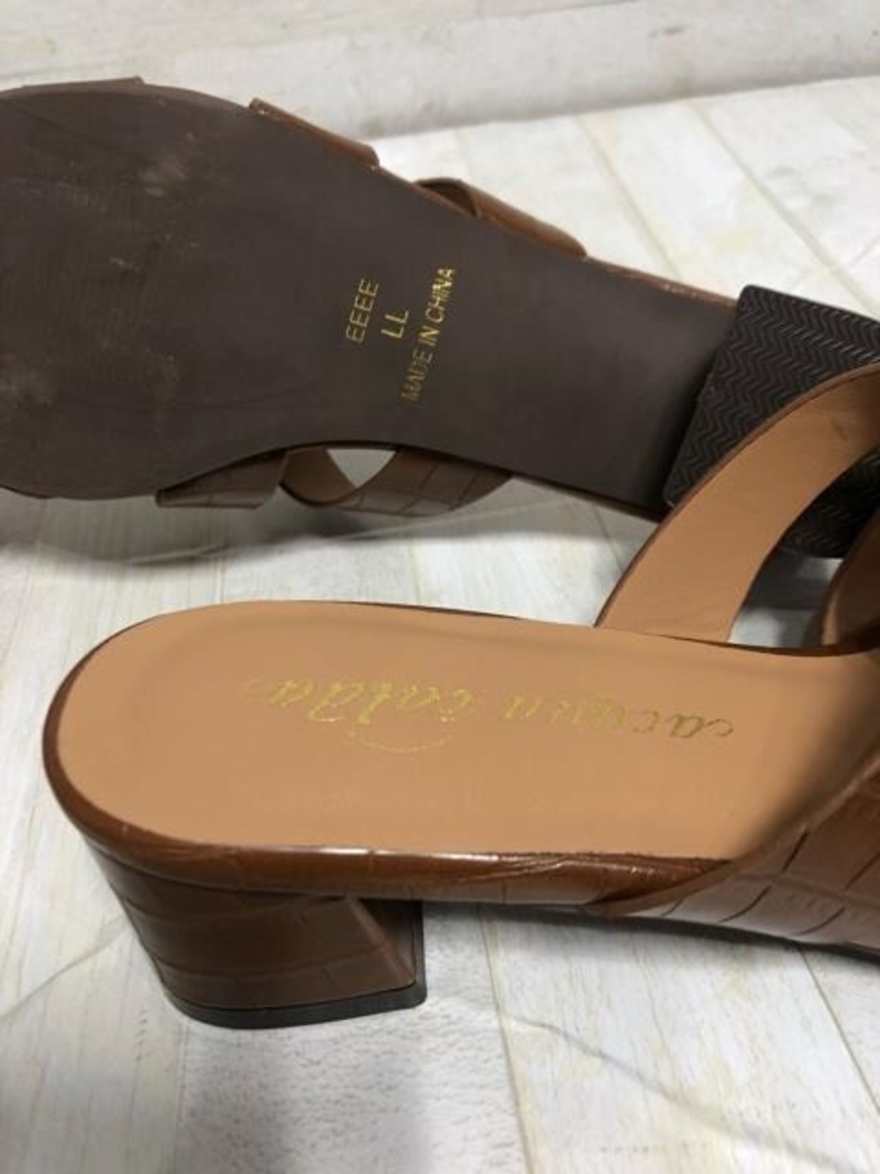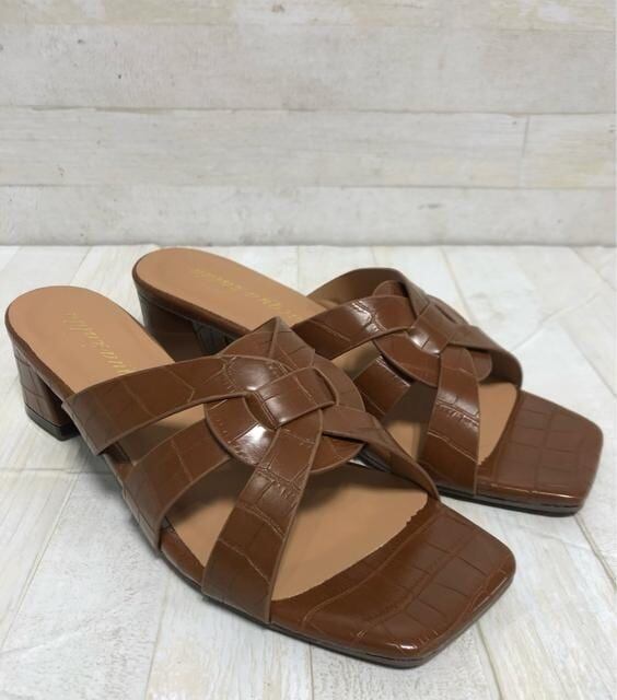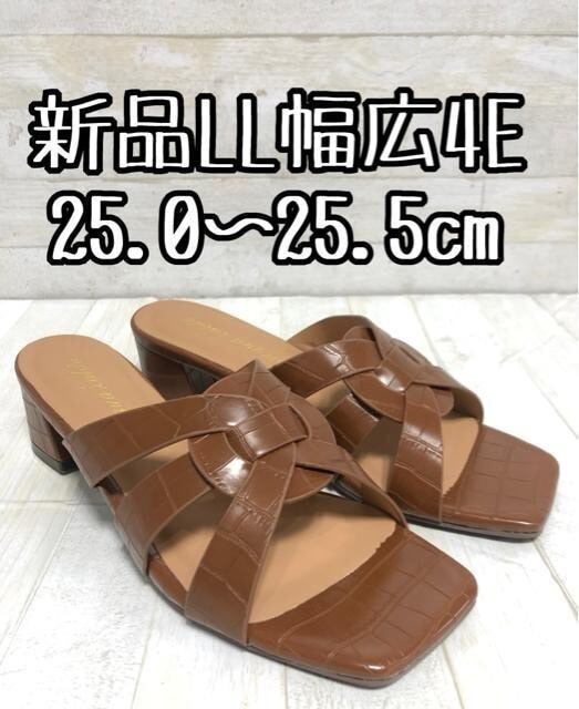 新品☆LL25.0㎝25.5cm幅広4E♪茶系きれいめサンダル♪ミュール♪☆D708